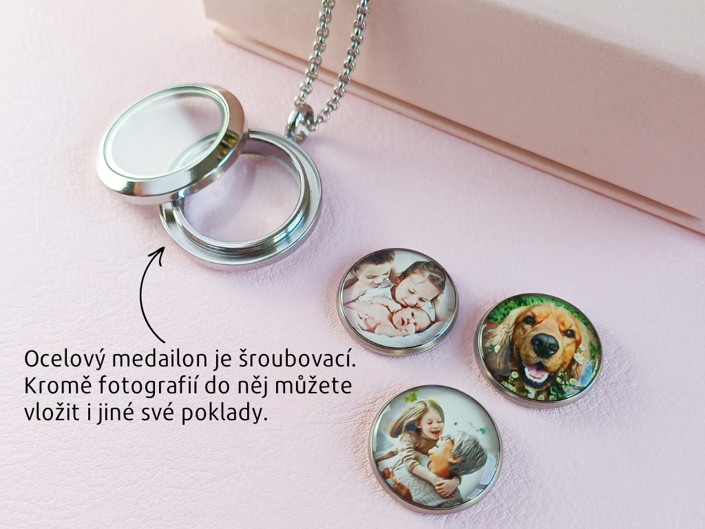 Náhrdelník s vyměnitelnými medailonky s fotografií - až 10 fotek