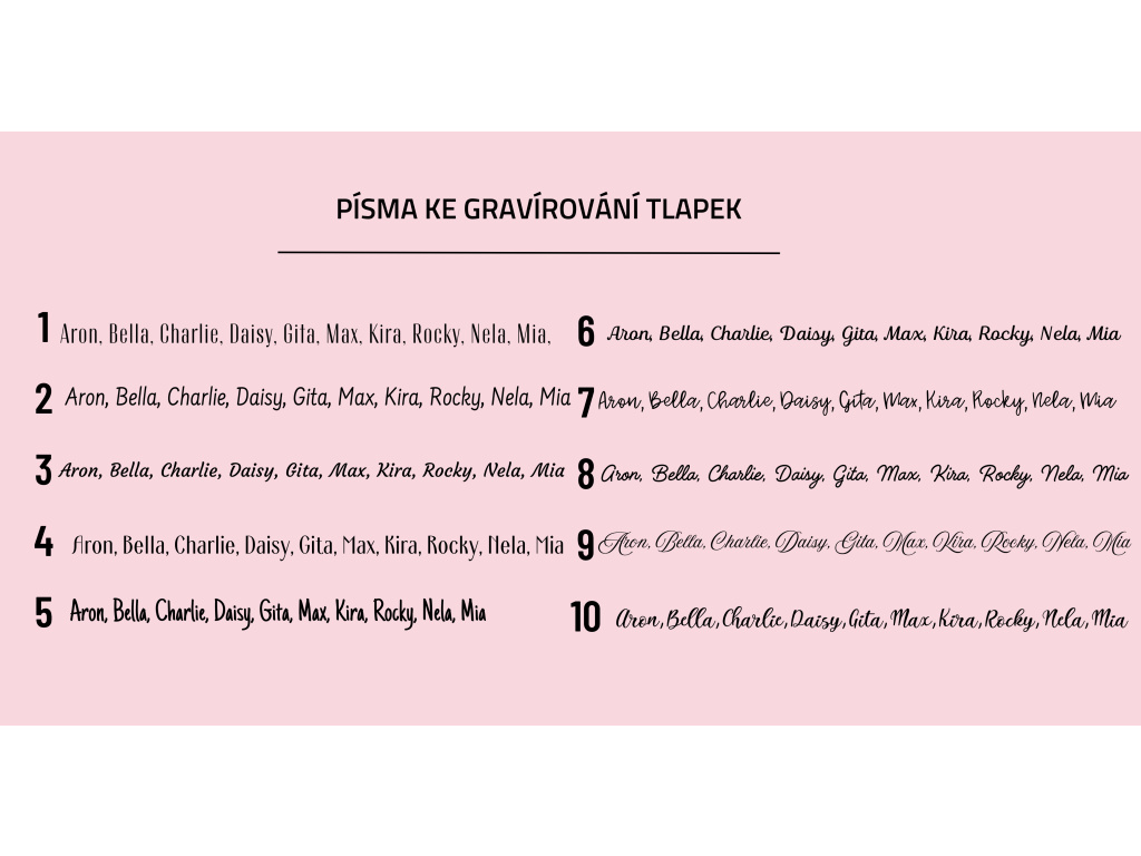 Tlapková LIMITKA - Saténový náramek s gravírováním jména pejska